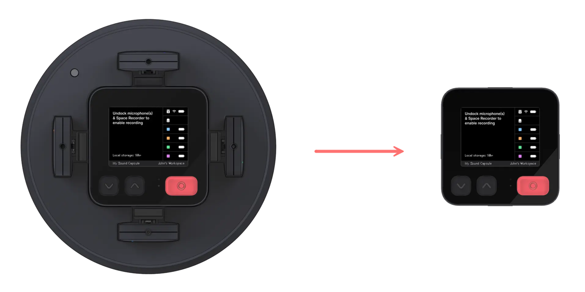 - Remove the Space Recorder from the charging case.